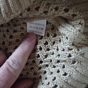 The Anrabess Women's Open Knit Beige Sweater Top in size L is a stylish and versatile addition to any wardrobe. This sheer and beachy crew neck sweater features long sleeves and is made from acrylic material, making it easy to care for with machine washable fabric. The relaxed fit and oversized design make it perfect for casual occasions in all seasons, while the solid beige color adds a classic touch to this pullover sweater. Ideal for those looking for a fairy-inspired and beach-themed piece that is both comfortable and chic.