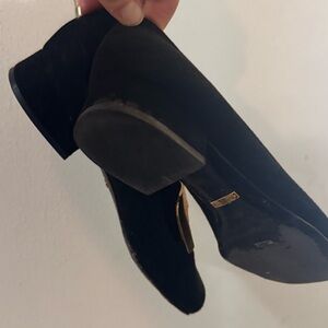 Elegant black loafers by Gucci. Features striking gold accent. Perfect for a refined style.