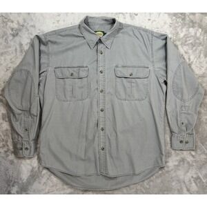 Cabelas Shirt Mens L Gray Button Up Chest Pockets Shirttail Hem Elbow Patches