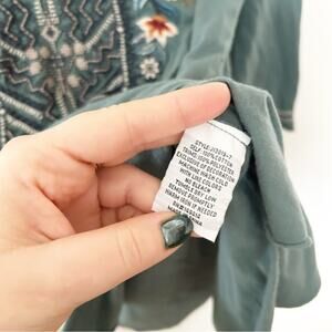 Johnny Was Eleni Green 3/4 Sleeve Embroidered Bohemian Tunic Blouse Top Size XS