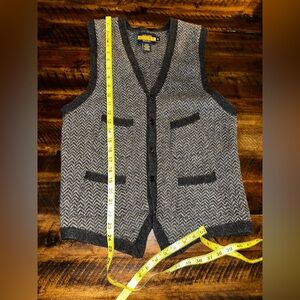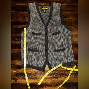 Ralph Lauren RUGBY Lambswool Herringbone Vest M Gray Wool Academic Preppy