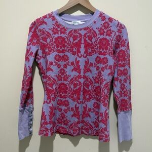 Sundance Floral Thermal Waffle Knit Top with Velvet Button Cuff Detail