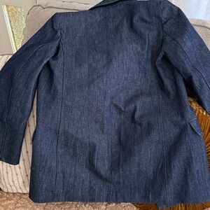 Zara Denim Tailored Denim Blazer Fully Lined One Button measurements are lying flat 19” Button up and length from the shoulder is 29” all approximate