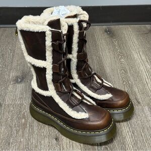 So soft and perfect for when the temperature starts to drop, these Dr. Martens boots feature soft grizzly leather uppers, an adjustable lace-up design, and faux fur trim and lining for a cozy touch.