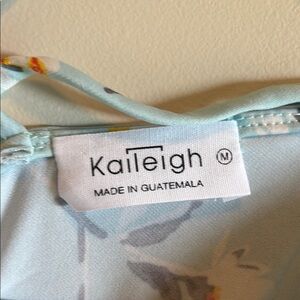 Embrace a relaxed and stylish look with this Kaileigh blouse, featuring short flutter sleeves and an asymmetrical design. The blue and green hues create a vibrant palette, perfect for warm weather. A unique V-shaped cutout at the back adds a touch of elegance to this lightweight top.