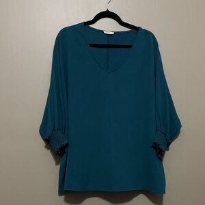 Kaileigh Blue Asymmetrical Flutter Sleeve Blouse