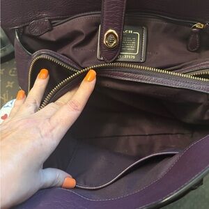 Good preowned condition, gorgeous eggplant color in pebbled leather. No strap