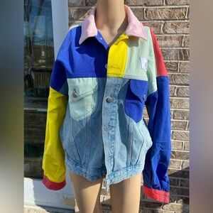 #casual casual jacket denim cotton colorful rainbow boho bohemian hippie indie colorblock