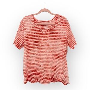 Terra & Sky Pink Burnout Stripe Short Sleeve V-Neck Tee Women’s 1X Plus Size