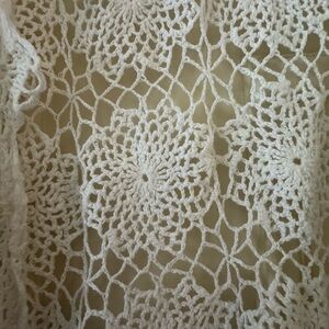 This elegant white crochet sweater is perfect for adding a touch of sophistication to any outfit. Its intricate design offers both style and comfort.