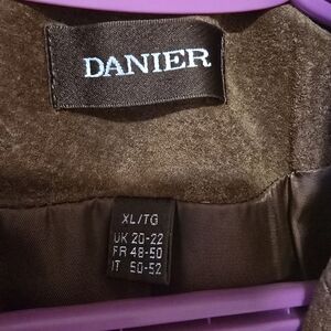 Elegant brown suede jacket with button details, perfect for any occasion.