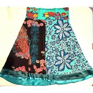 Desigual Mixed Materials Fruit Floral Boho Skirt Size Medium