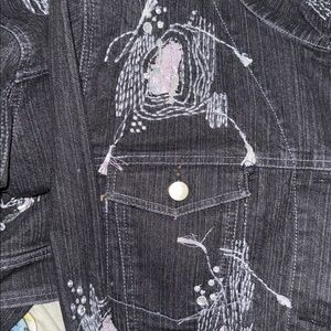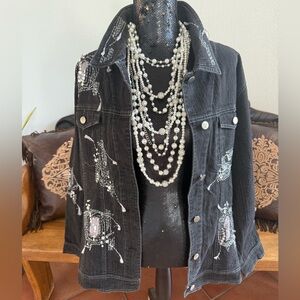 IOS Black Denim Sequin and Embroidry Embellished Jean Jacket Size Large