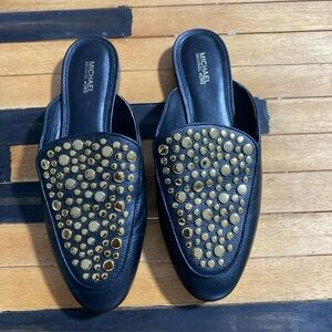Michael Michael Kors Farrow Mule Black Studded Leather Slip On Womens 8.5M