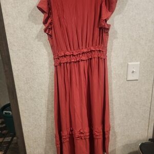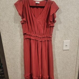 J Jill Red LENZING™ Ecovero™ Viscose Midi Dress Size Small Ruffle Waist Flutter Sleeve