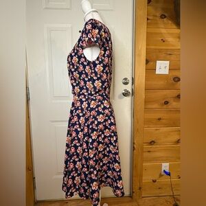 Betsey Johnson Lined Navy Floral V-Neck Midi Dress size 6