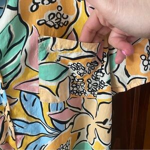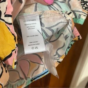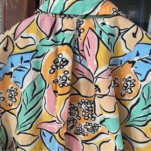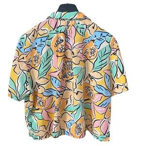 Enhance your wardrobe with this vibrant tropical print top. Ideal for any occasion, this multicolor design injects a splash of color into your style. In excellent condition. Review all photos, manufacturing details, and measurements carefully before purchasing.