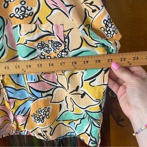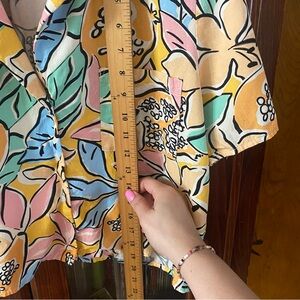 ASTR The Label Tropical Cropped Linen Blend Top with Buttons Size M
