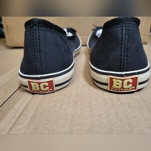 BC Footwear Black Canvas Slip-Ons.....Cream Rubber Soles.....Cleaned inside and out.....No rips or tears...Slight fade....No Box.....Ready to wear......Women Size 7.5......See All Photos