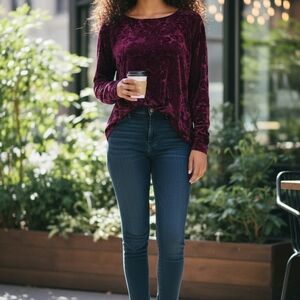 Elegant velvet blouse with a floral pattern. Soft and stylish for any occasion.