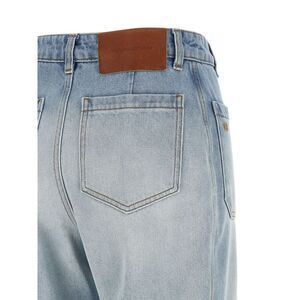 'Alina' cotton denim jeans with loose leg slightly flared at the bottom, front pockets, zip and button closure at the waist. True to size fit