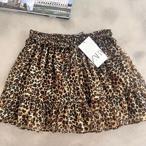NWT ZARA Leopard Animal Print Ruffle Mini Skirt Small