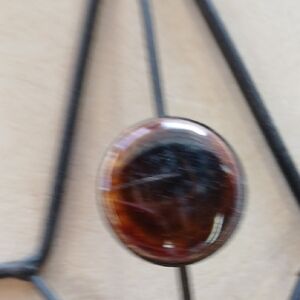 Stylish black metal star wall decor featuring brown accents. Perfect for adding a rustic touch to any room.