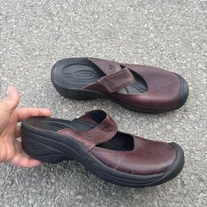 Keen Women's Saratoga brown leather slip-on clogs or mules size 7.5