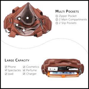 Large Hobo Tote Satchel Bag Soft Leather Multi Pocket Convertible Shoulder Bag