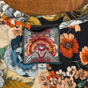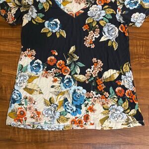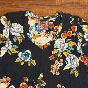 Johnny Was Women’s Floral Print AOP V-Neck Short Sleeve Shirt Flowers Navy