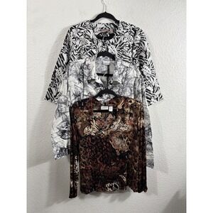 Chicos Lot of 3 Tops Blazer Size 2 Travelers Animal Print Abstract Button Down