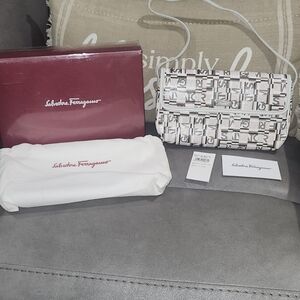 Salvatore Ferragamo Gancini Embossed Gray And Black Leather Wallet