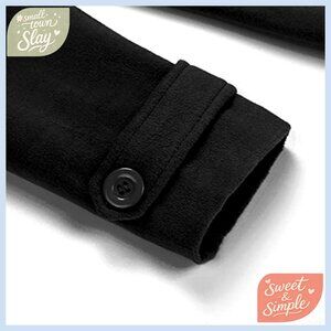Details: Turn down collar, long sleeves, side pockets, button closure