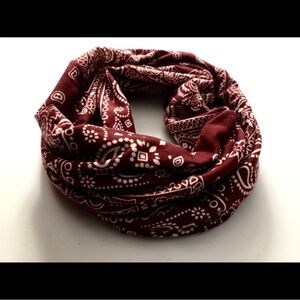 has an opening at the top that allows you to wear as a ponytail beanie, headband, and also around the neck as an infinity scarf!