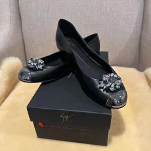 Giuseppe Zanotti Crystal Embellished top grain leather Ballet Flats Size 39