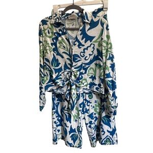 Christian Siriano Blue and Green Linen Matching Vacation Resortwear Set