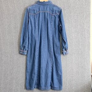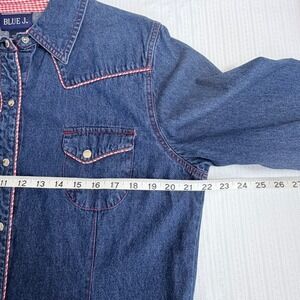 Blue J Womens Denim Maxi Dress L Blue Western Snap Front Gingham Trim Cotton