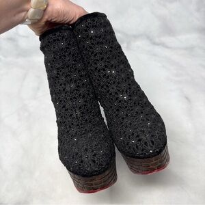 Charlotte Olympia Damsel in Distress Castle Tower Heel Crochet Platform Boots 38