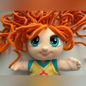 Delight your child with this vibrant plush doll featuring striking orange bendable hair and a cheerful outfit. Perfect for imaginative play and cuddling.