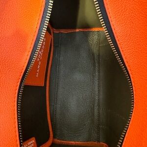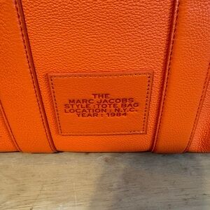 Eye-catching Marc Jacobs tote in vibrant orange. Spacious and stylish for everyday use. Style: Tote/Shoulder Bag; Size: 8x9.x5”; Condition: Excellent; Exterior in very good condition; Interior in very good condition.