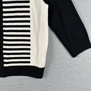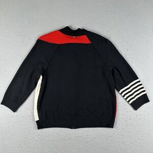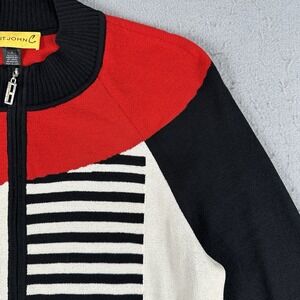 St. John Knit Zip Front Cardigan Jacket Womens Large Red Black White Striped