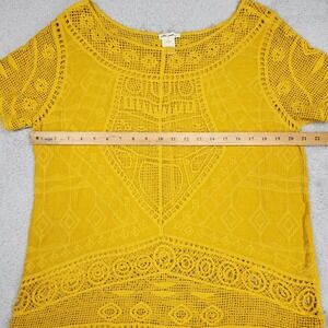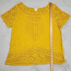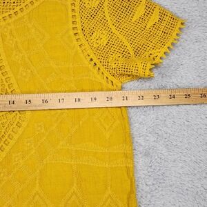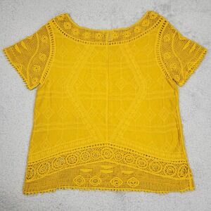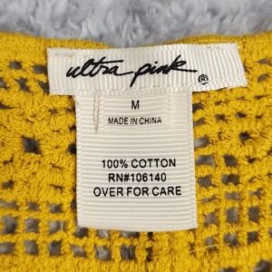 Ultra Pink Blouse Womens Medium Yellow Crochet Embroidered Boho Scoop Neck Top