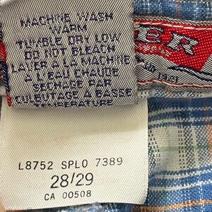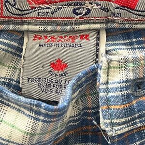 Vintage Cotton Check Flare Mid-Rise Blue White Made in Canada Pants 28