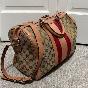 Elegant Gucci GG Web Boston Bag size large with crossbody strap. Open to reasonable offers. Authentic.