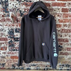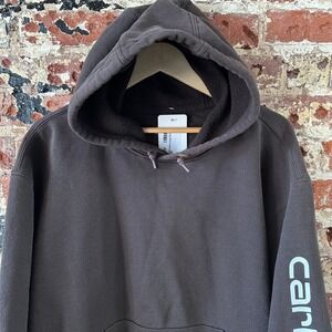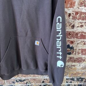 Carhartt Hoodie Sweatshirt Brown Mens Size Large Sleeve Spellout
