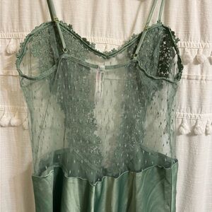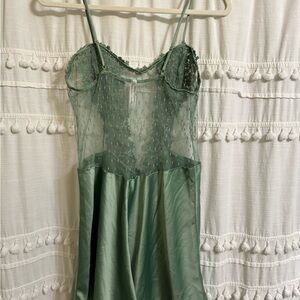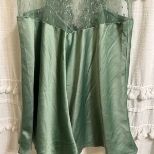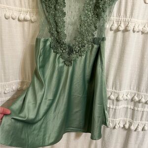 FLORA NIKROOZ Showstopper Charmeuse Chemise in Forest Green Slip Dress Medium