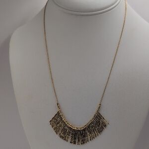 Excellent condition jumpsuit. The jumpsuit has light peeling in collar. Will not impact wear, reacted with my wood hanger, I suggest hanging on fabric hanger.