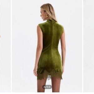 NEW NWT - Commense Lace Trim Ruched Velvet Mini dress green Small