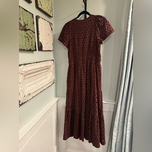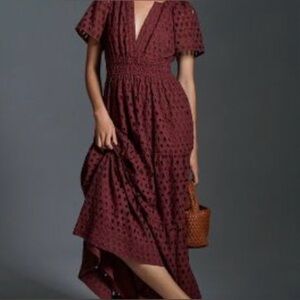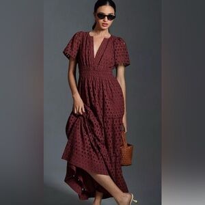 Anthropologie Somerset Eyelet Maxi Dress Chocolate Brown size M. This gorgeous dress comes from a smoke free home with 🐶🐶🐶 3 rescued pups that don’t wear my dresses.