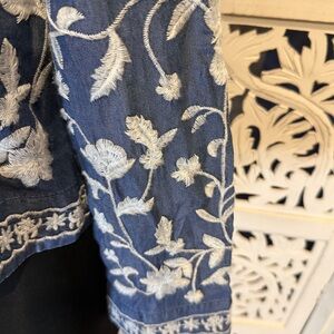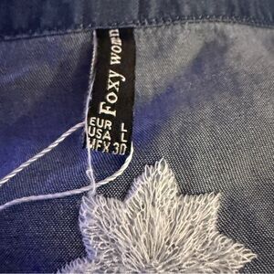 NWT Foxy Women Blue Jacket with White Embroidery Sz L